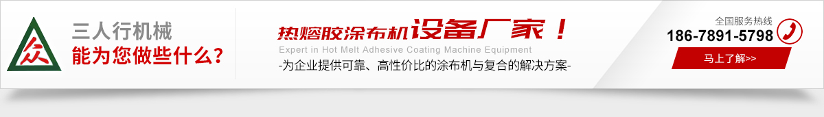 青島三人行機(jī)械主營(yíng)產(chǎn)品熱熔膠涂布機(jī)!